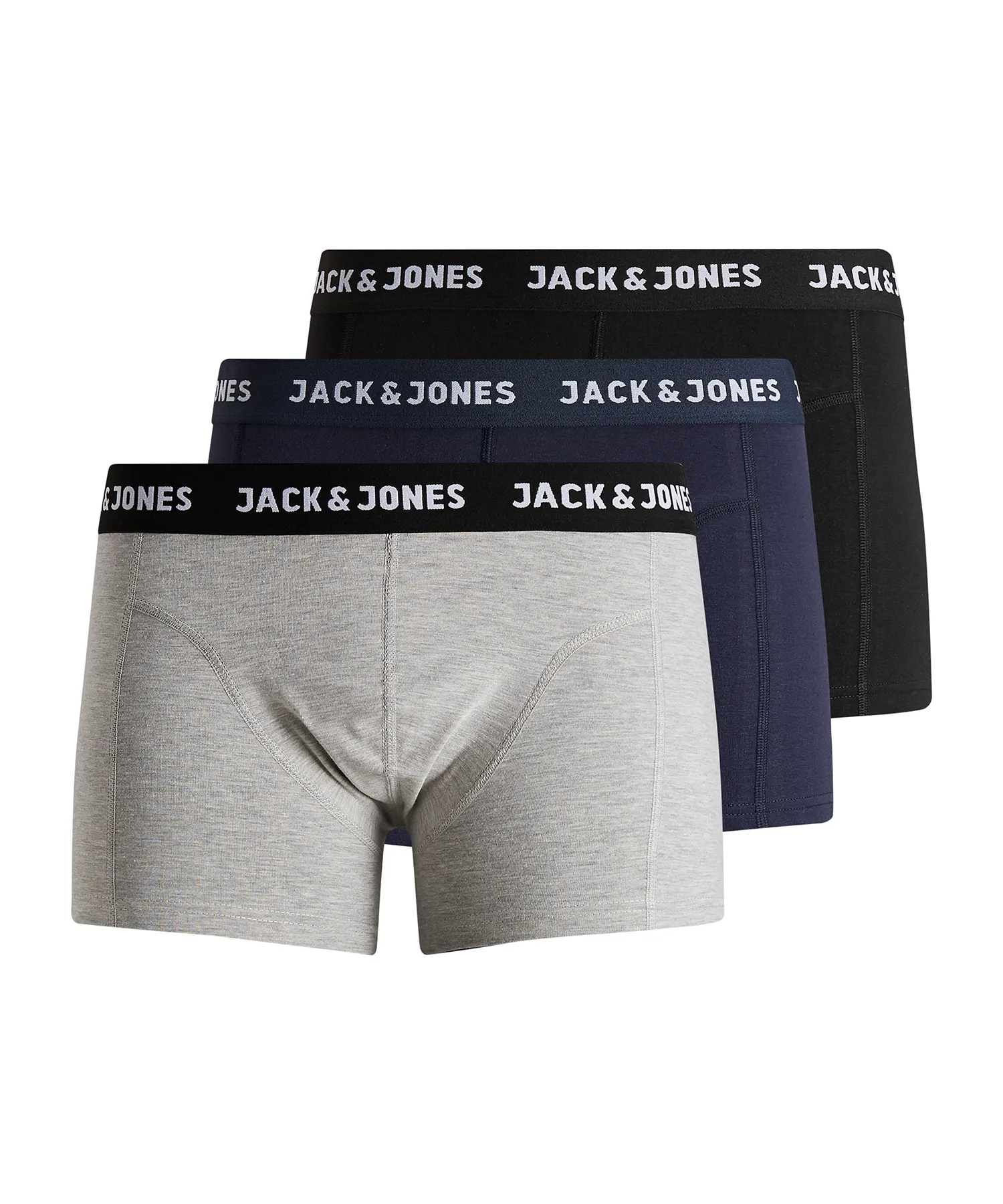 Jack & Jones boxerkalsonger levereras i ett 3-pack i färgerna Svart/Grå/Blå. Materialet är av slitstark bomull och elastan för optimal komfort.