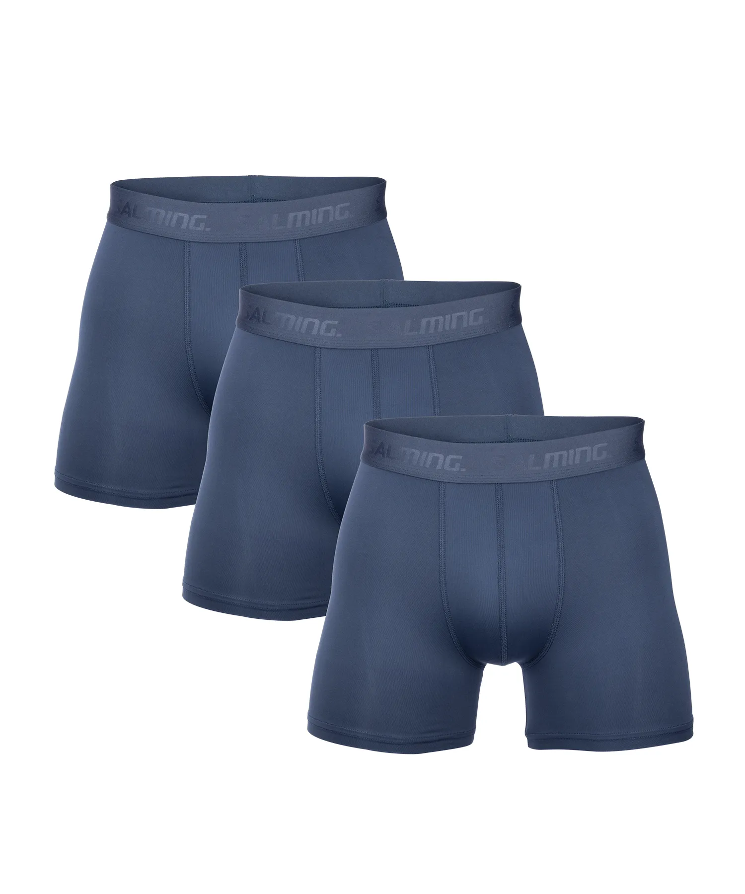 Blå träningskalsonger från Salming i praktiskt 3-pack. Tillverkade i en tålig kombination av polyester och elastan som ger följsam stretch, hög komfort och god temperaturbalans under träning. Det mjuka midjebandet i mikrofiber är 4 cm brett och sitter bekvämt på plats utan att skava.
